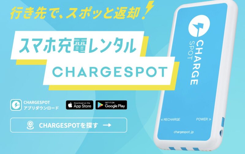 ChargeSPOT(チャージスポット)は、専用アプリを使ってモバイルバッテリーを「借りて・返せる」便利なサービス。